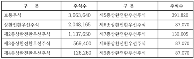 (3) 주식의 액면가액 : 500원